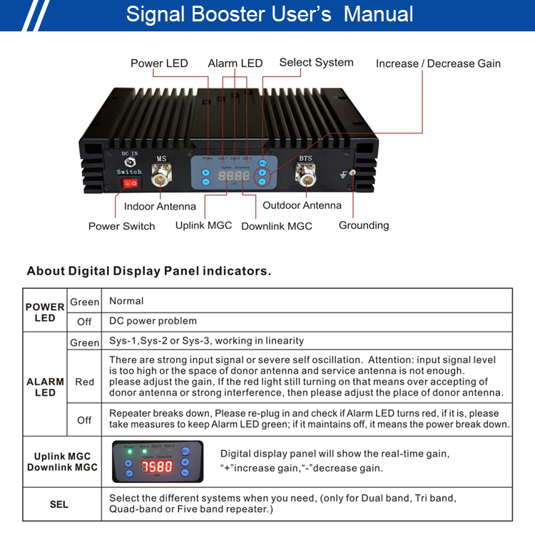 Пользователи могут выбрать коэффициент усиления и рабочую систему с помощью светодиодной цифровой панели.